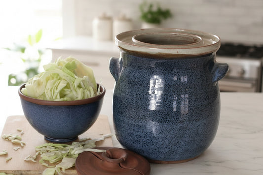 Fermentation & Pickling Crock Glazed in Denim & Cream