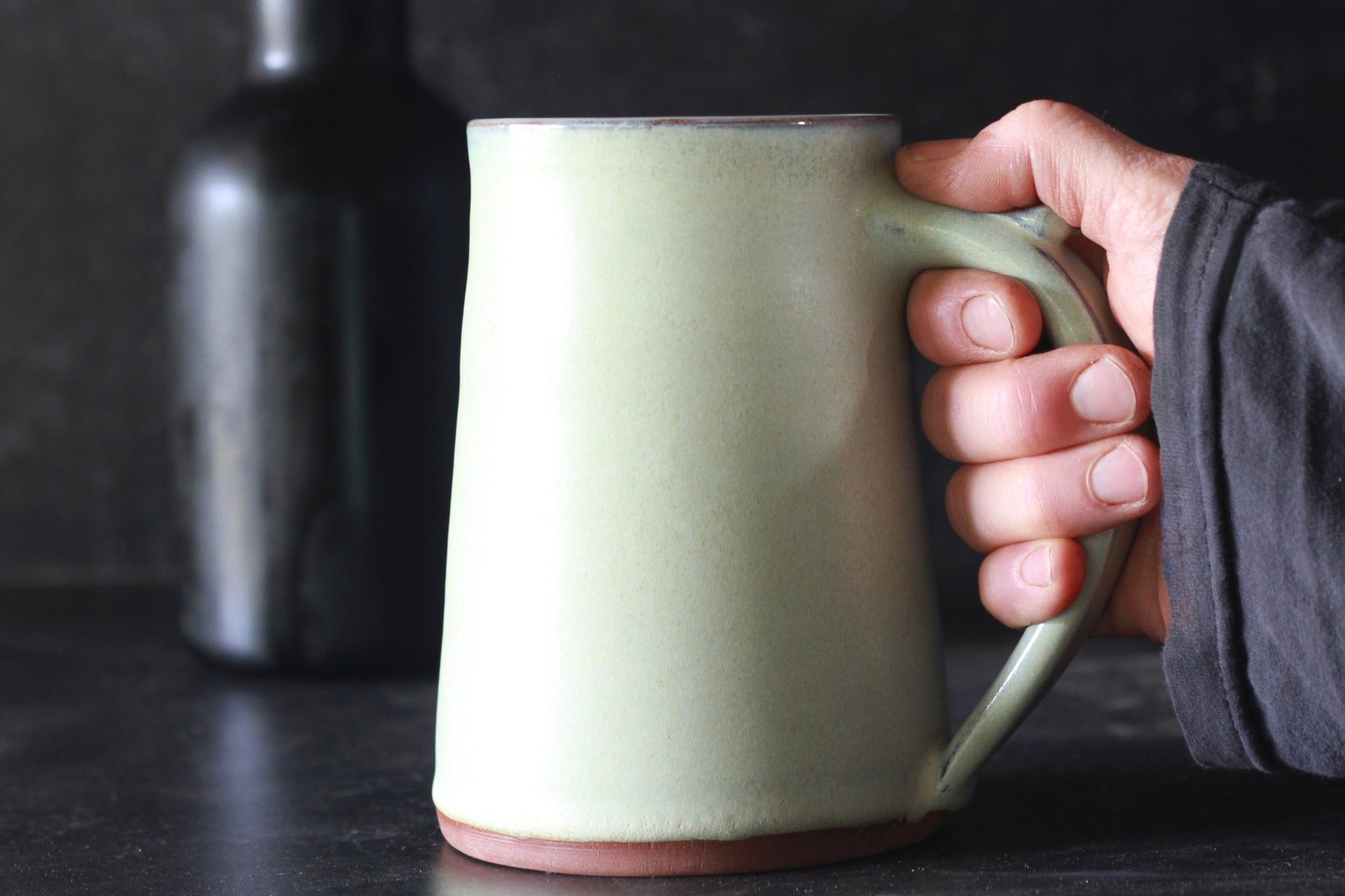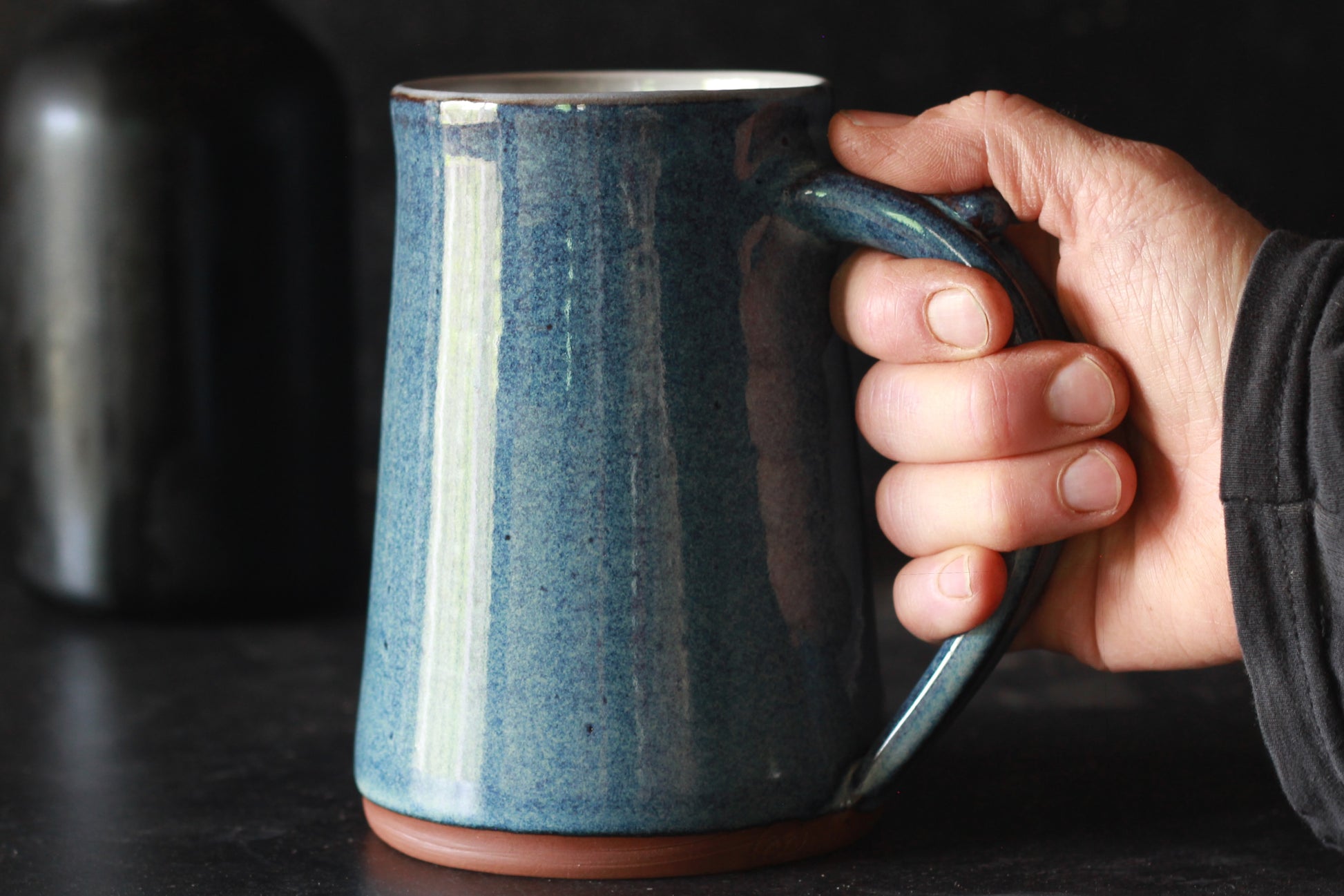 This big beautiful stein is super comfortable to hold even when filled to the top thanks to the thumb tab and large tapered handle. Glazed to perfection and stunning to use or gift.