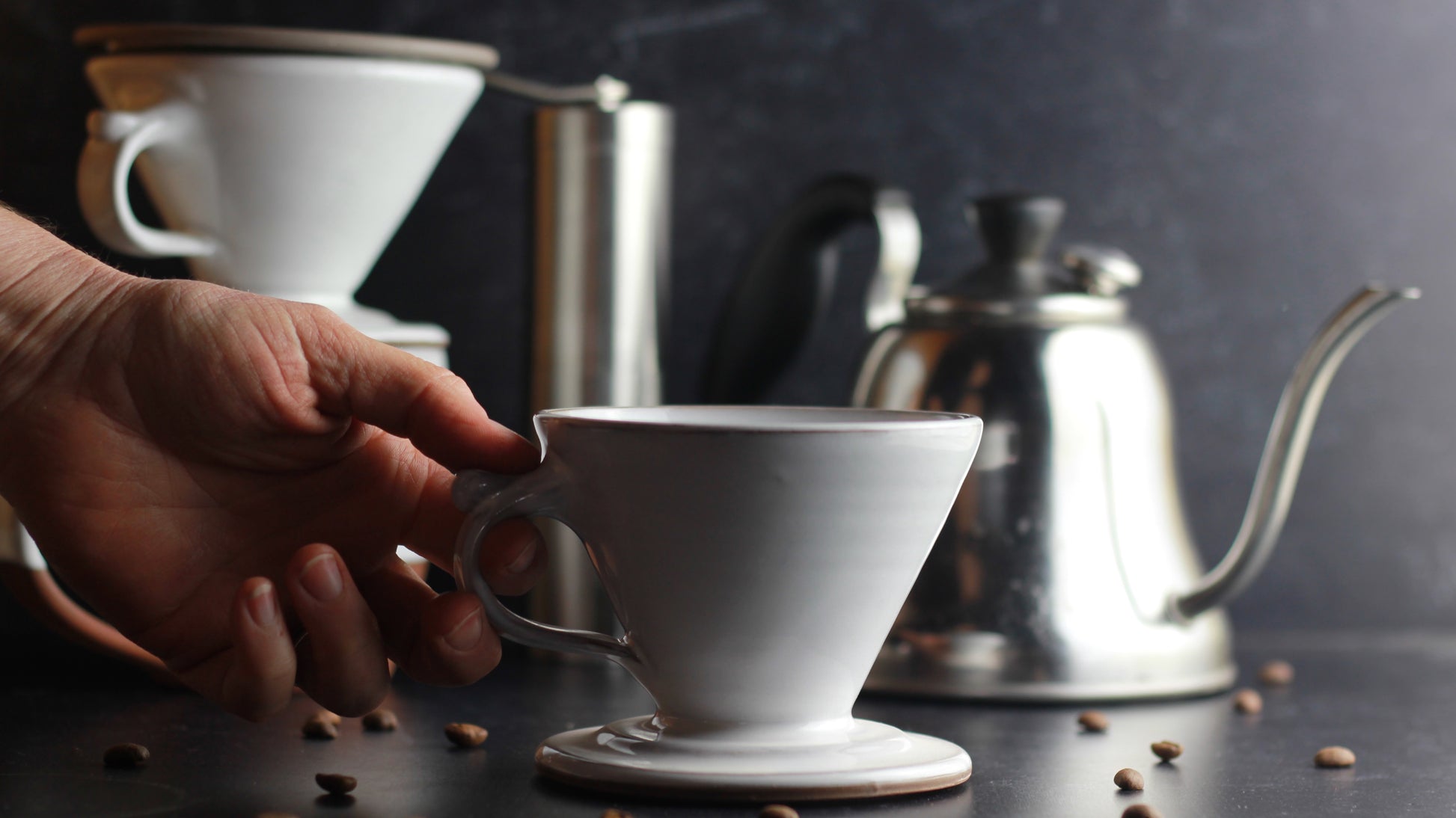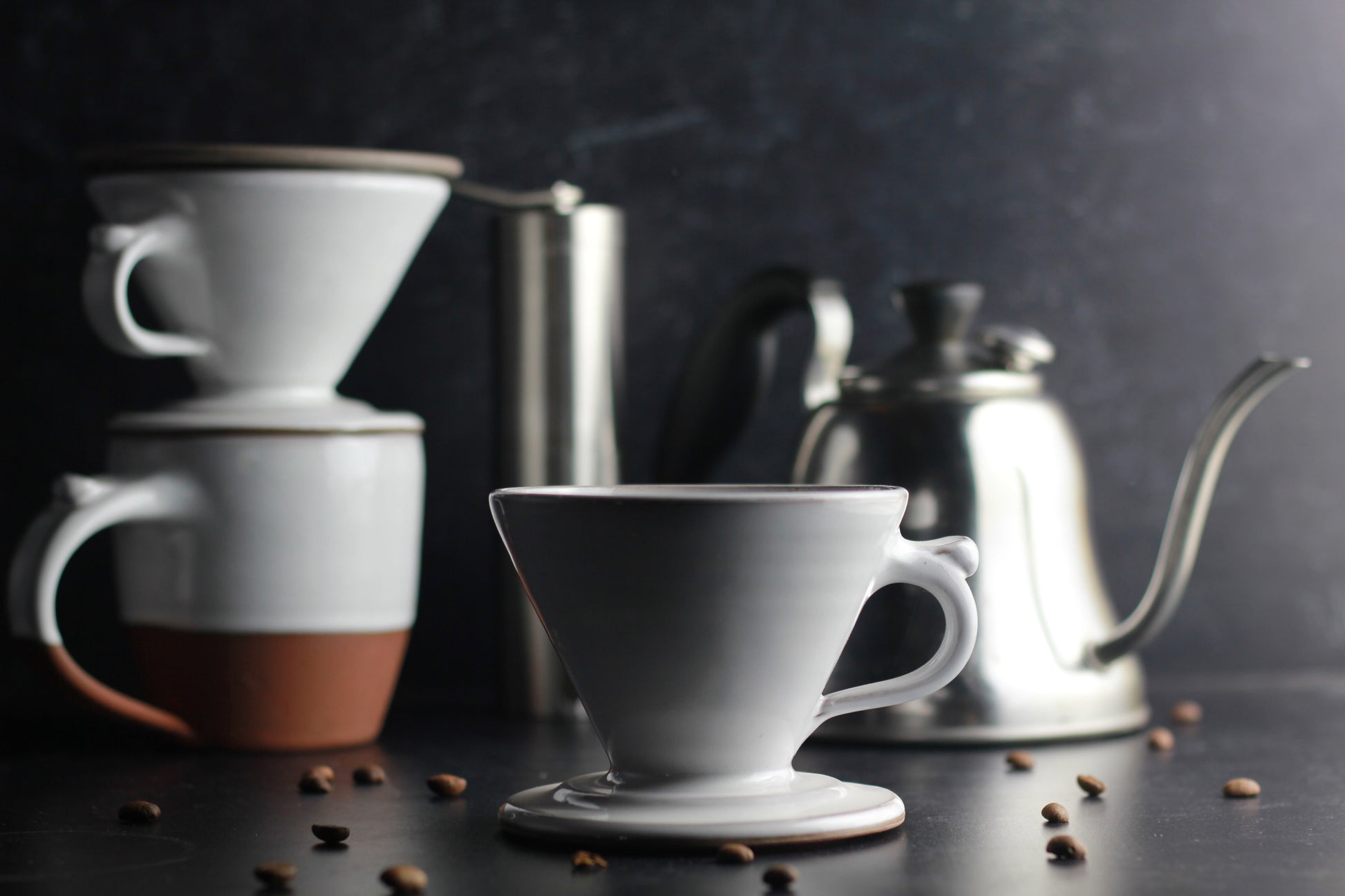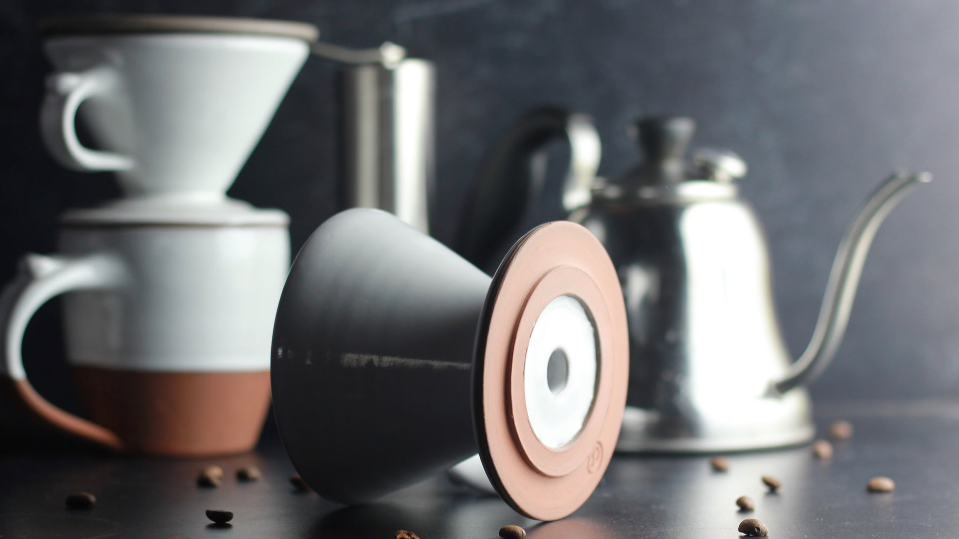 My pour over is fashioned after the V60 classic dripper. The cone shape and spiral ridges allow for deep laying of the coffee grounds and you control the brew strength.