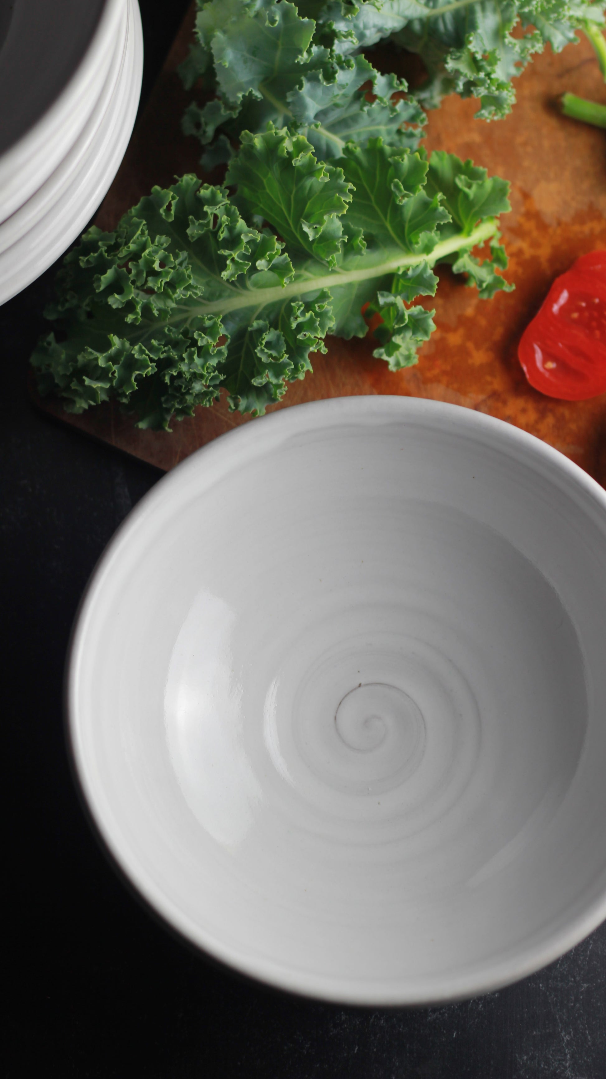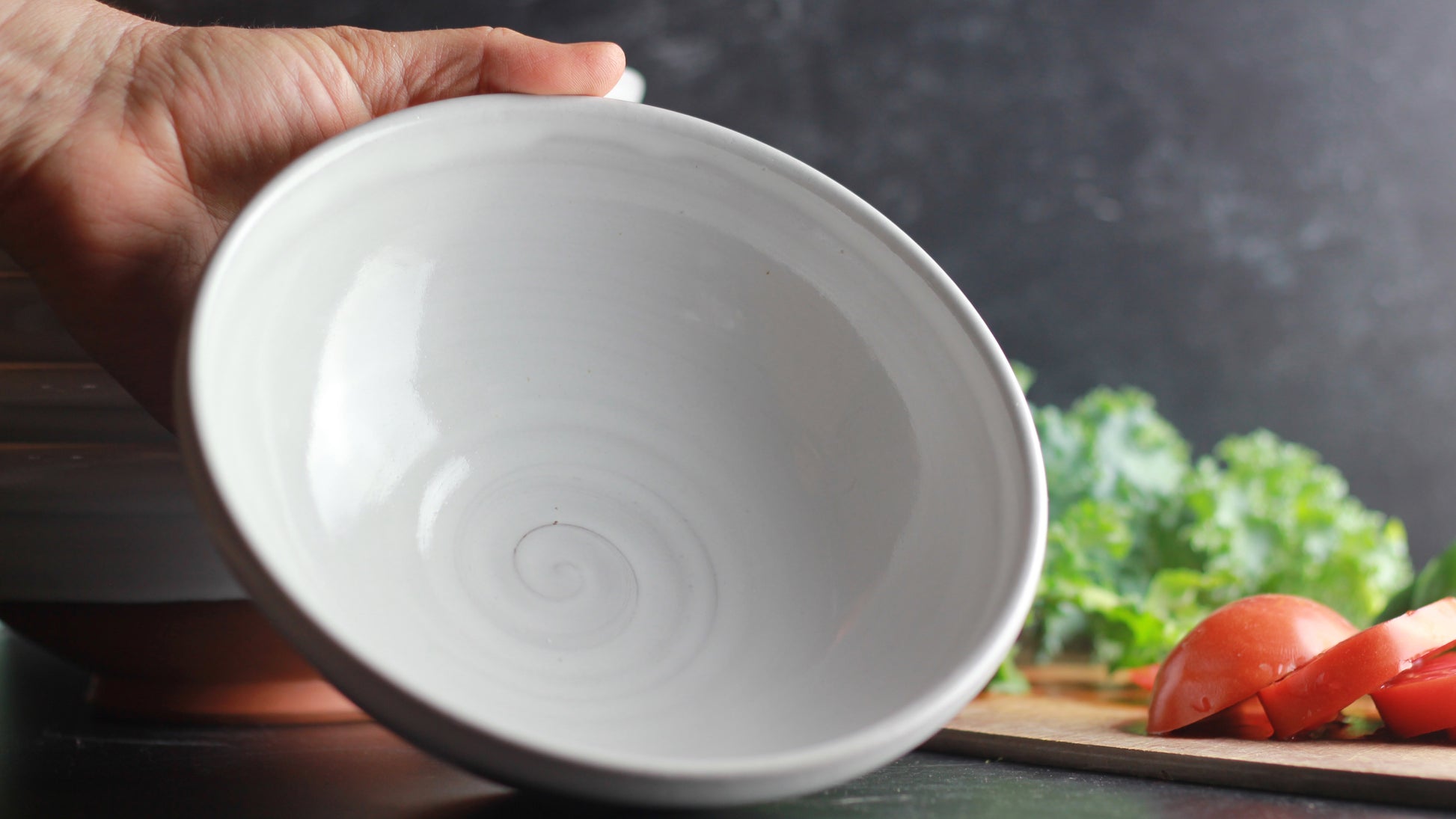 I work long hours in the studio, my kids are grown and not living at home anymore. Total transparency moment here, sometimes my husband and I eat dinner on the couch while watching TV and this bowl is the shizzle for doing just that. It stays cool to the touch when microwaved and the foot ring creates the perfect finger hold for holding the bowl and eating. It looks just as lovely used as a salad bowl on a fully set table with my plates and stemmed glasses. I won't tell you where to eat, but I can tell you that before this joined the "for sale" family, we tested it out and are in love.