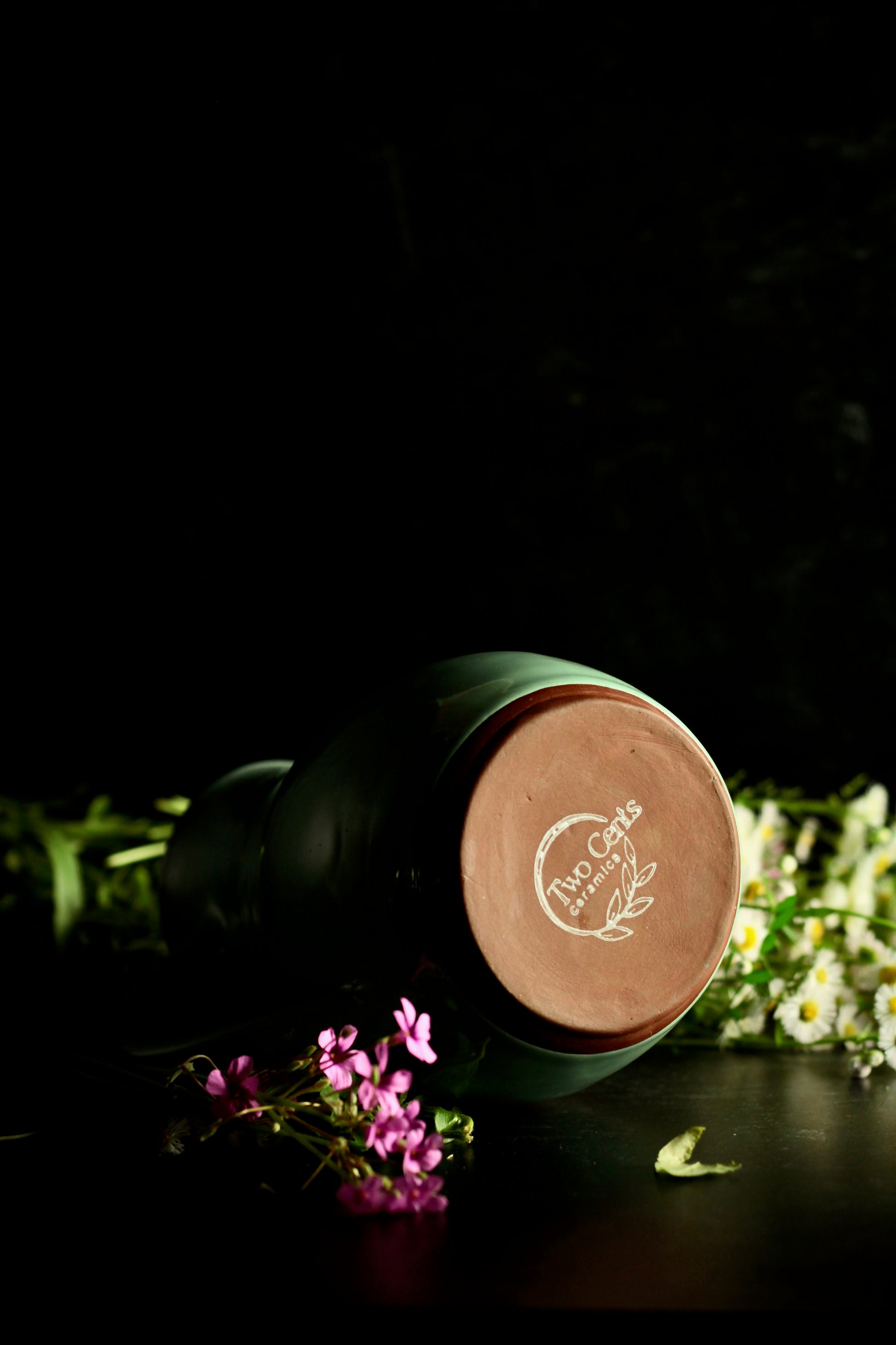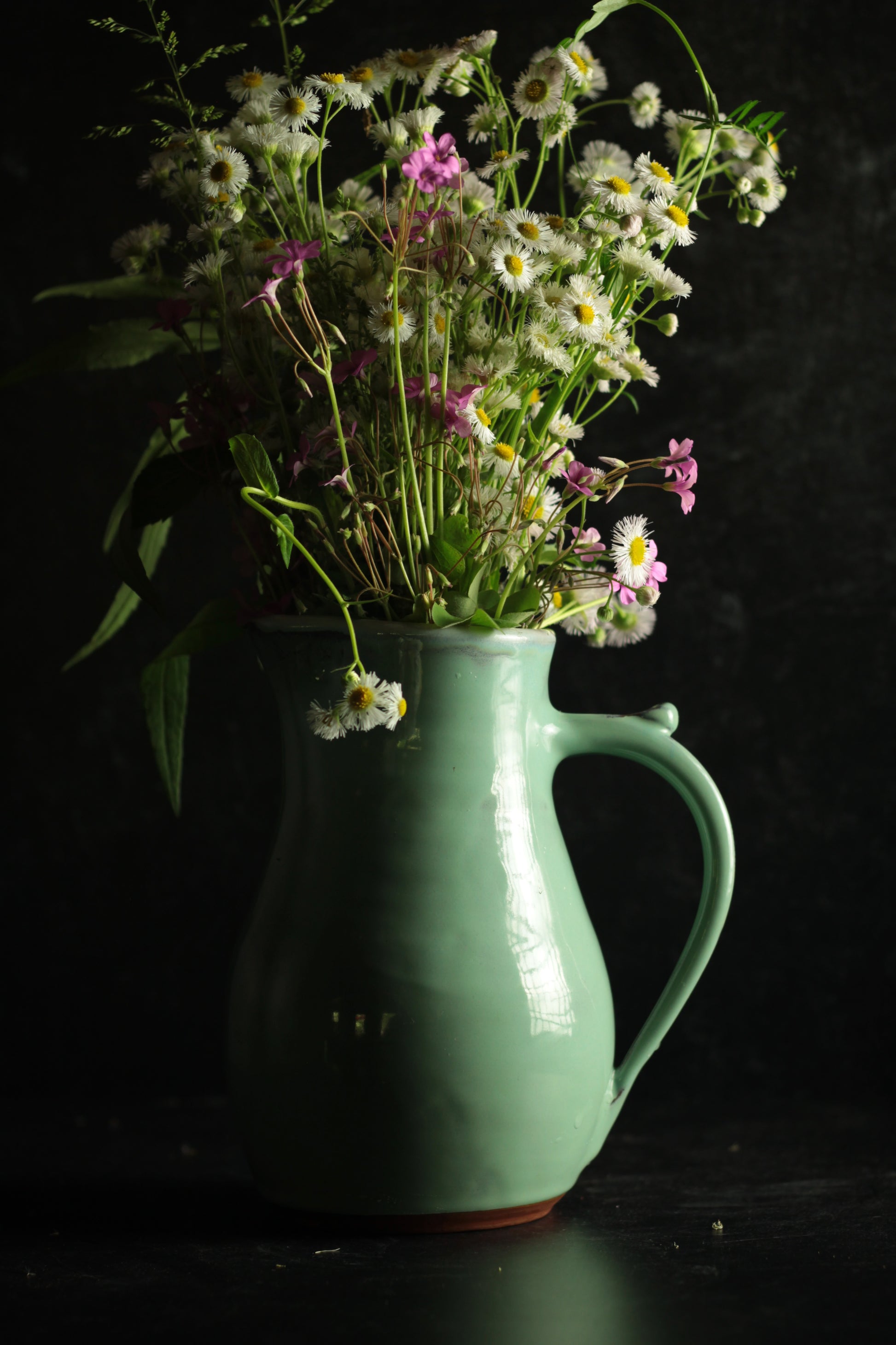 Spring temperatures continue to press towards Summer. It's one of my favorite times of year. Wild flowers bloom just outside the studio. This vase is inspired by the color of sea glass and is perfect for filling it with flowers, or pouring lemonade for a friend. Enjoy the pitcher from my hands to yours.
